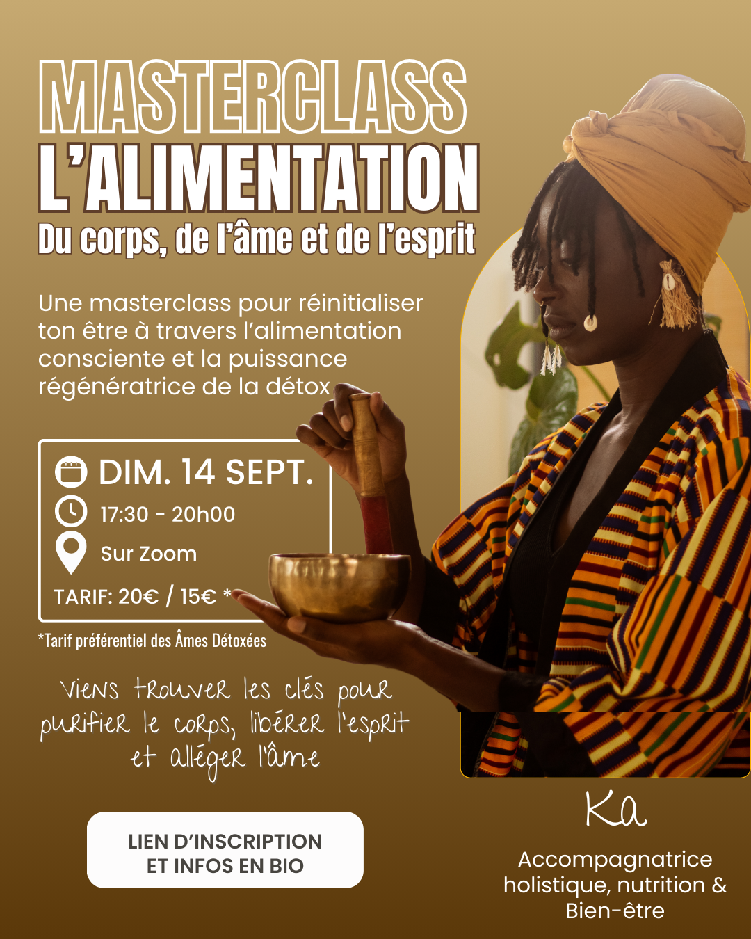Chaque masterclass est conçue comme un espace de transmission concret et accessible, mêlant théorie, pratique et pistes d’intégration dans ton quotidien.